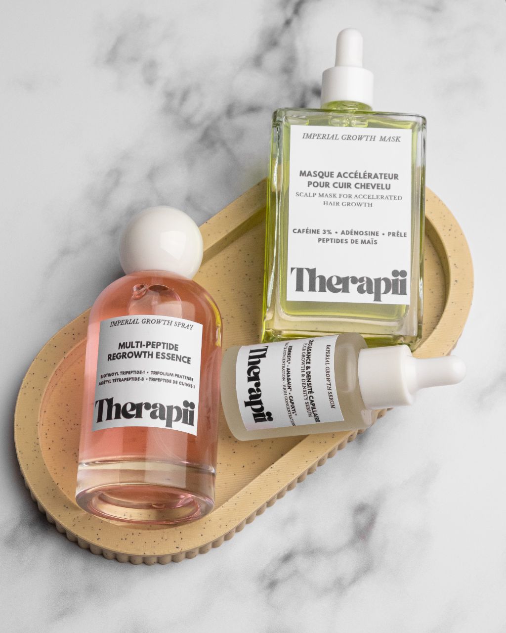 Les produits Therapii sont exempts de parabènes, de sulfates et de silicones, utilisant uniquement des ingrédients naturels, vegan et cruelty-free.